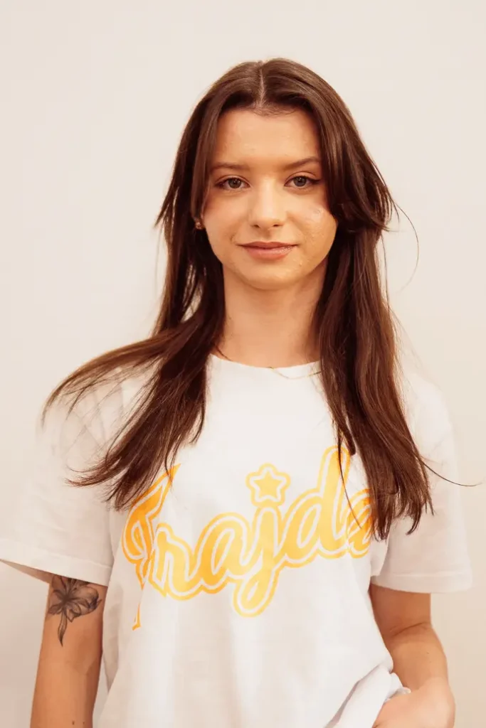 Moja przygoda z tańcem zaczęła się, gdy miałam 6 lat, a przez kolejne 10 hip-hop był moją pasją, dzięki której zdobyłam cenne doświadczenie. Pasją która nauczyła mnie uważności, pracy zespołowej i odkrywania rytmu – nie tylko w muzyce, ale też w relacjach i codziennych działaniach. Dziś nie stoję już na parkiecie, ale mam ogromną przyjemność współtworzyć to, co dzieje się za kulisami Frajdowej Ekipy.